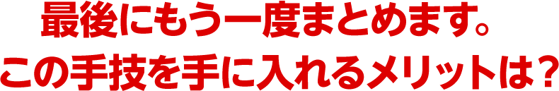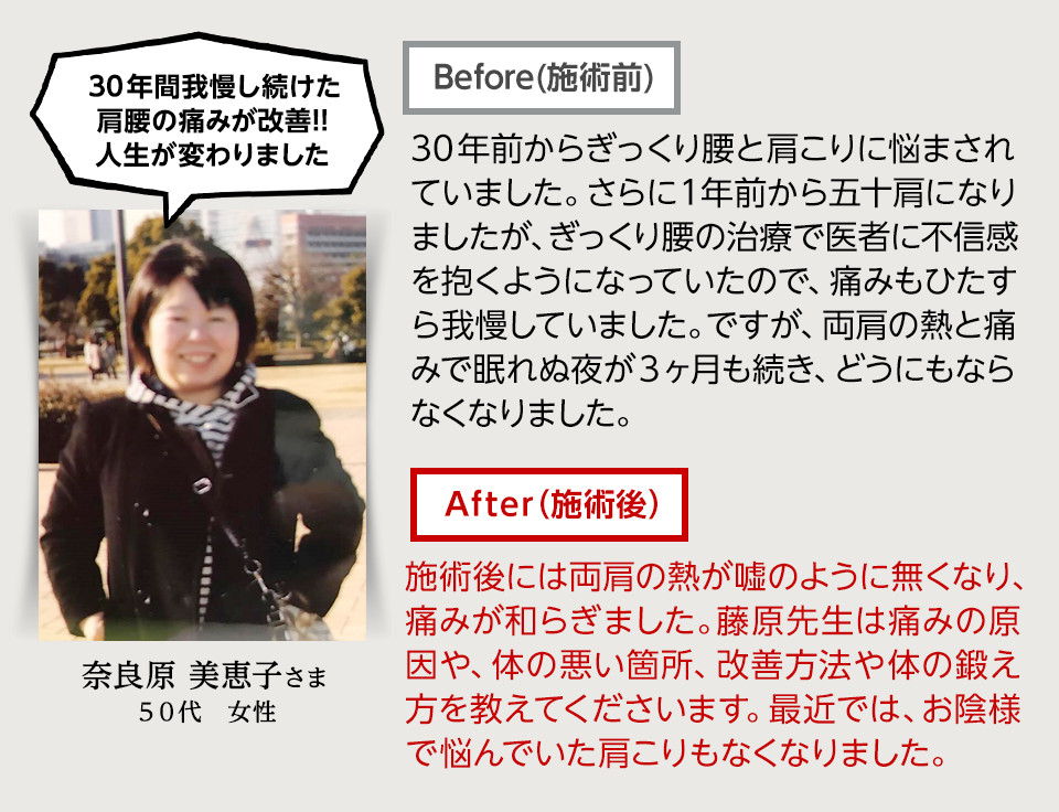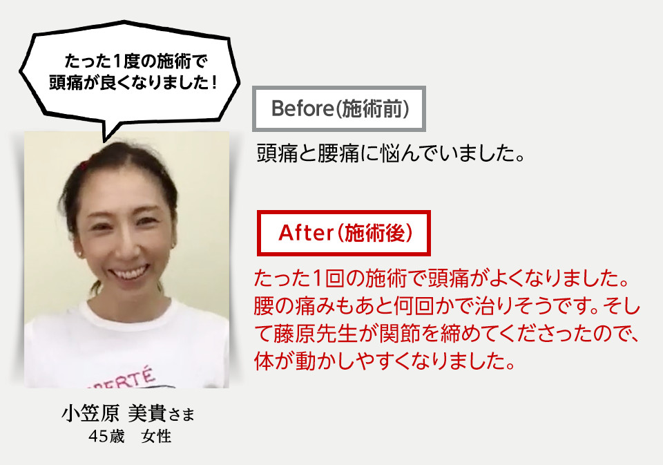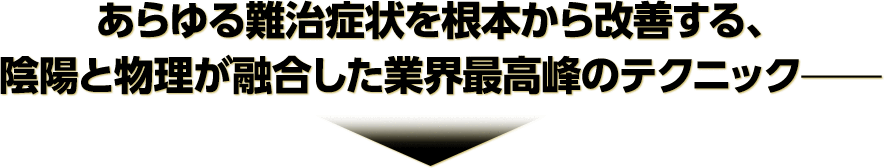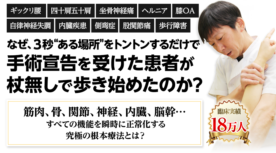 など、神技という表現に見劣りしない、優れた即効性と再現性、持続性の全てを兼ね備えた手技です。