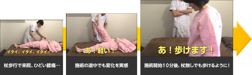 それが、施術開始10分で…なんと杖無しで歩けてしまったのです。