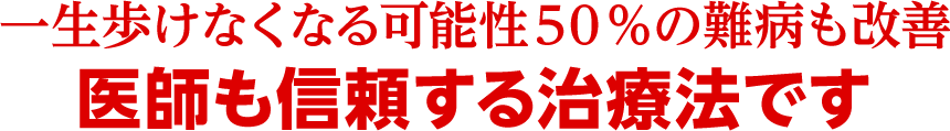 髄損傷で歩けなくなった患者さんなど、病院でも良くならなかった患者さんも救ってきた、多くの実績を持つ治療法です。