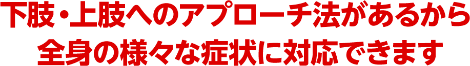今回ご紹介する手技は、上肢・下肢への様々なアプローチ法が含まれています。