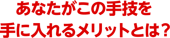 その高い効果から、クチコミ・紹介だけで新患が訪れるようになる治療法です。広告費ゼロ、手技力だけで他院と差別化できるワンランク上の治療院を目指せます。