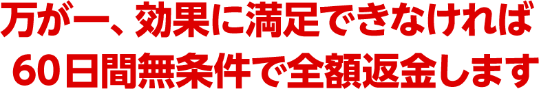 もし万が一、あなたや院のスタッフさんが、60日の間しっかりとDVDの内容を実践しても結果がでなかったとしたら、それは全て私たちの責任です。そこで、お求めいただいたDVDの[全額返金満足保証]サービスを設けております。